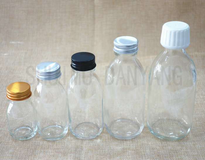 Clear syrup glass bottle with different cap