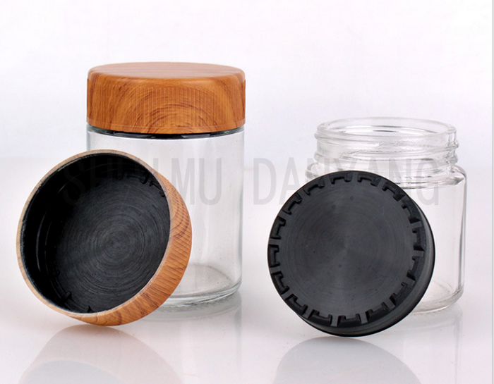 Product name:Wooden child resistant cap glass cosmetic jar